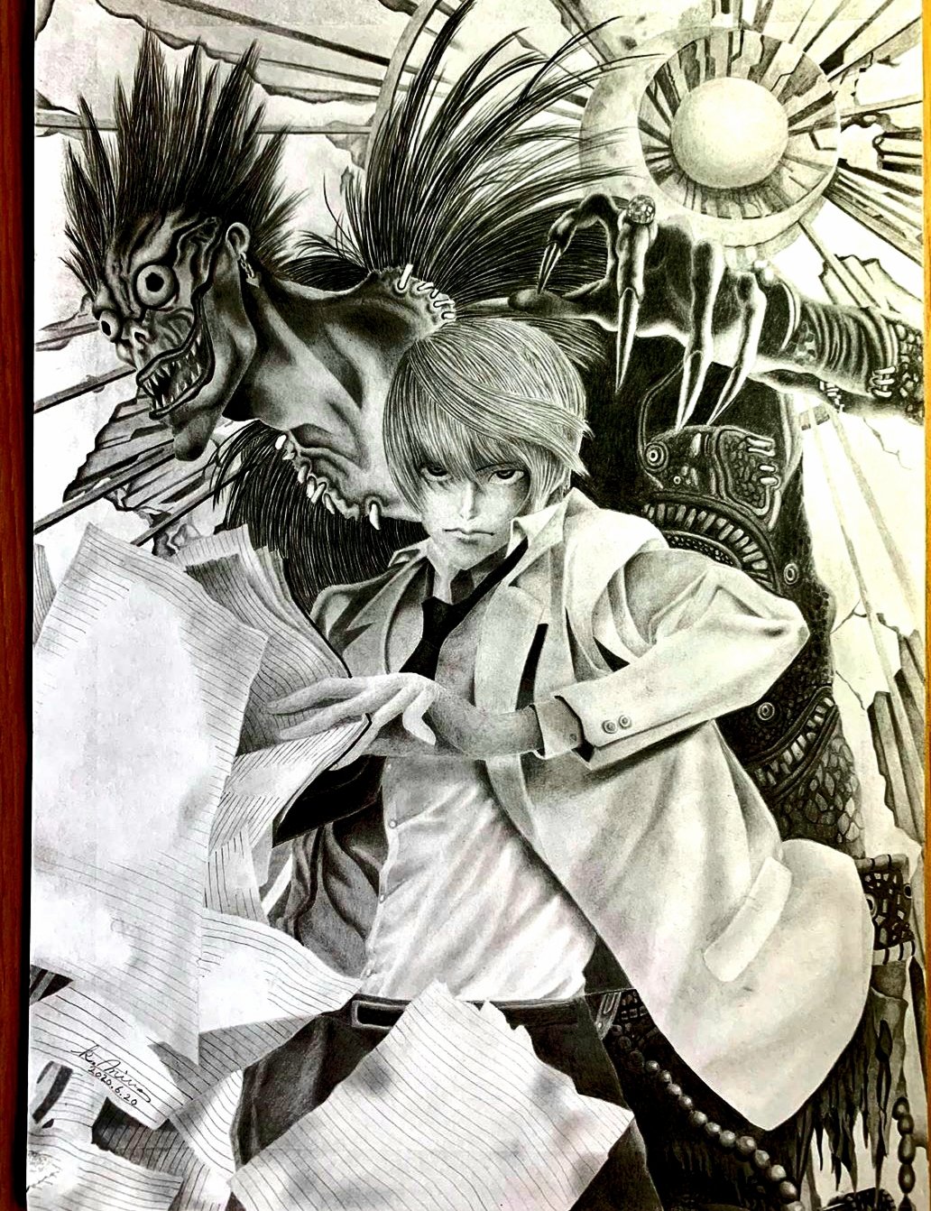 つきまる 久し振りの鉛筆画 鉛筆画 イラスト 絵描きさんと繋がりたい Deathnote デスノート 小畑健 ですあーと T Co Qzvlhf3mhn Twitter